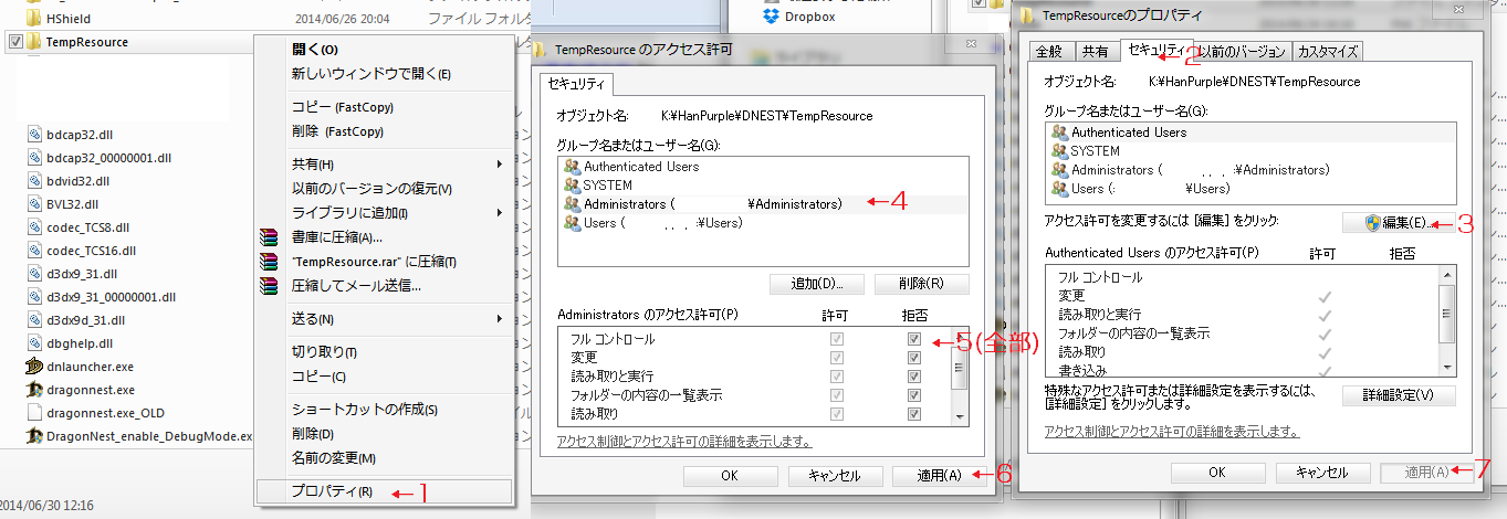 TempResourceのファイルを右クリ プロパティからセキュリティタブ